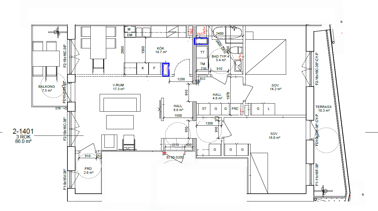 2-1401 – 86 kvm – 15.983 kr/mån – Balkong & terrass (ledig från 1/6)