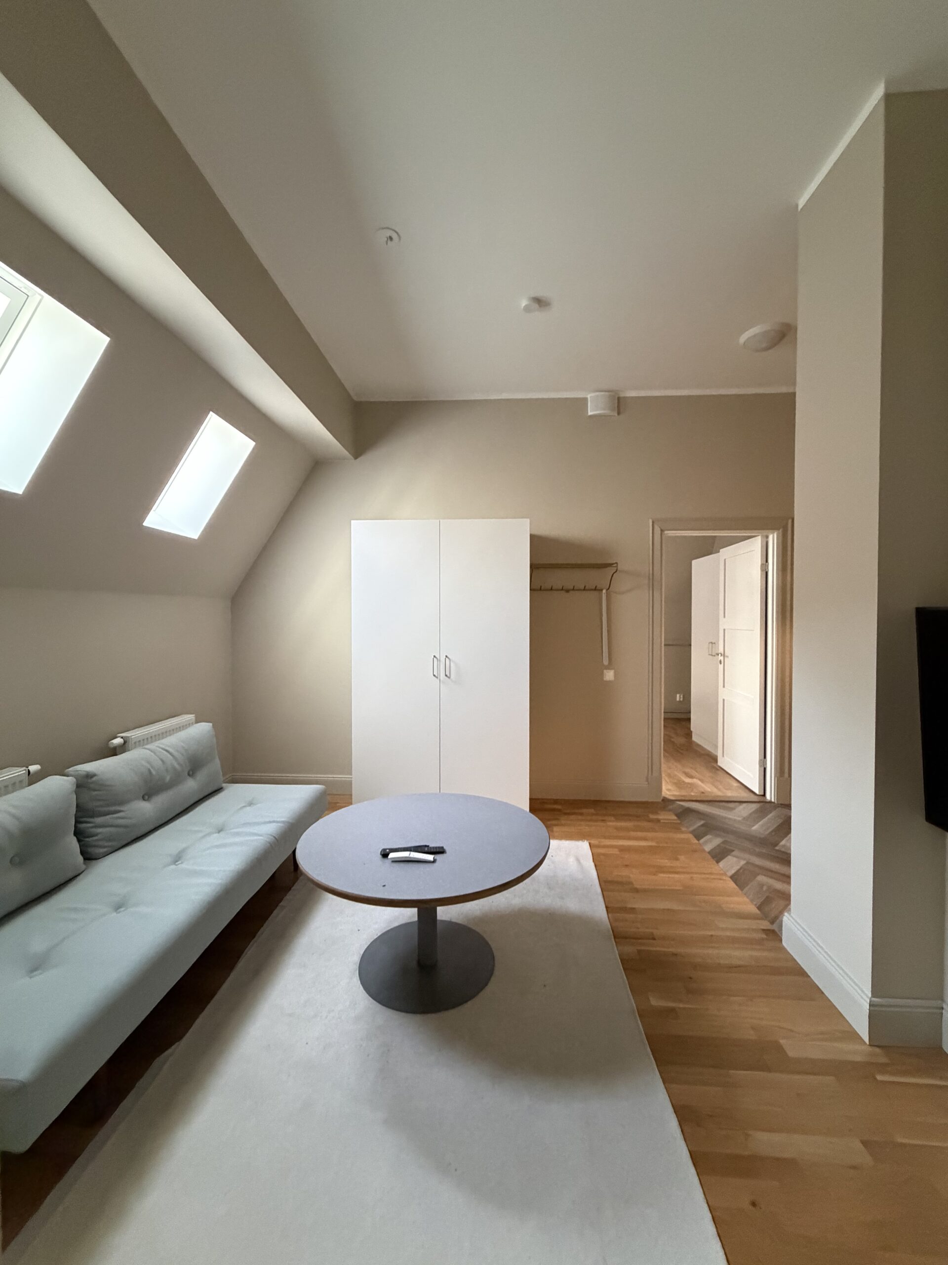 Tidigare har denna byggnad använts som bland annat ett sjukhus och på senare år för olika typer av sociala verksamheter. Fasigheten har varsamt renoverats till att nu vara bostäder. Lägenheterna är från 1 till 3 rum och kök med unika planlösningar och vackra detaljer. Dom har fullt utrustade kök och badrum med kombinerad tvätt- och torkmaskin. Till fastigheten tillhör även parkeringsplatser som finnas att hyra.